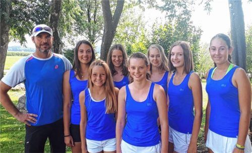 Die Mädchen 14 des TC Schnaitsee wurden mit 11:1 Punkten Meister in der Bezirksliga und steigen in die Superbezirksliga auf. Auf dem Bild von links: Trainer Udo Verbega, Hannah Edlmann, Leonie Verbega, Luisa Wastlhuber, Hannah Pichler, Anna Maria Hopf, Bianca Kromp und Sarah Westner.