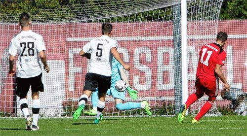 Der Fußball-Regionalligist 1860 Rosenheim kassierte nach dem sensationellen 3:2-Sieg gegen Bayern München die nächste Niederlage. Beim Ex-Coach Tobi Strobl, der aktuell Ingolstadt II trainiert, verloren die Sechziger 0:2. Das Bild zeigt den Treffer zum 1:0 für Ingolstadt durch Amar Suljic (rechts).