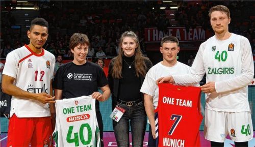 In der Halbzeit des spannenden Euroleague-Basketballspiels zwischen dem FC Bayern und Zalgiris Kaunas aus Litauen (Endstand 88:84) traten die Handicap-Basketballer des SB Rosenheim gemeinsam mit der OBA München in einem kurzen Demospiel im Audi-Dome auf. Anschließend bekam der Rosenheimer Philipp Ri