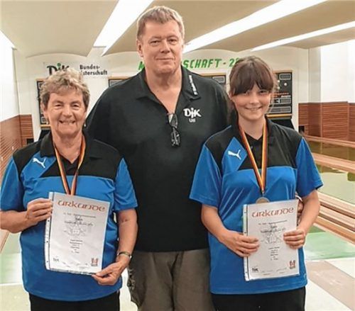 An der DJK-Bundesmeisterschaft der Kegler in Weiden nahmen 18 Kegler vom SV DJK Kolbermoor mit Fachwart Ulrich Griebel (Mitte) teil. Fünf Keglern gelang der Sprung in die Endläufe. Herausragendes Ergebnis war die Titelverteidigung der Damen-C-Spielerin Ingrid Böhme (links). Durch einen furiosen Endl