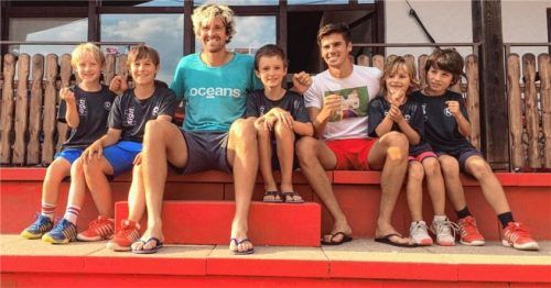 Die U10 Midcourt-II-Mannschaft des TC 1860 Rosenheim wurde Meister in der Bezirksklasse 1. Auf dem Foto (von links): Paul Figiel, Moritz Figiel, Christian Lindell (Herren I TC 1860), David Roser, Federico Coria (Herren I TC 1860), Vincent Szabados, Valentin Szabados. Es fehlen: Jule Gaal und Charlot