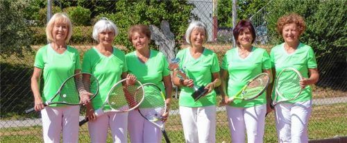 Die Freizeit-Damen Doppel 60 des ESV Rosenheim wurden in der Bezirksliga Meister (12:2 Punkte). Von links: Marianne Mangold, Nadia Wölflick, Agnes Purainer, Roswitha Wettemann, Sylvia Bergmaier und Johanna Sandner.
