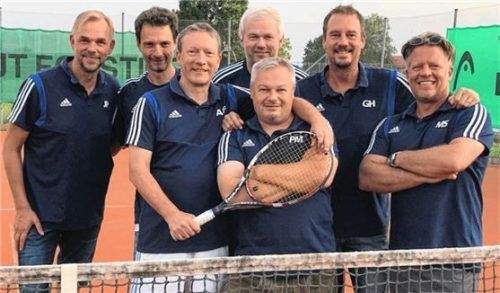 Die Herren 40 des SV Forsting-Pfaffing wurden in der Bezirksklasse 2 ungeschlagen Meister und steigen in die Bezirksklasse 1 auf. Foto (von links): Jörg Pottrick, Tobias Rieder, Andreas Fieber, Mathias Machl, Peter Meyer, Georg Haneberg und Michael Stelzmüllner. Es fehlt: Christian Hartl.