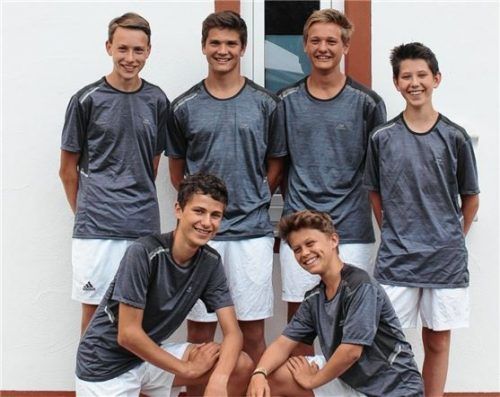 Die Knaben 16 des TC Breitbrunn wurden in der Bezirksklasse 2 Meister und steigen in die Bezirksklasse 1 auf. Foto (von links vorne): Marinus Hübl und Lucas Kast sowie (hinten): Kilian Baumgartner, Roman Moll, Raphael Moll und Julius Hübl.