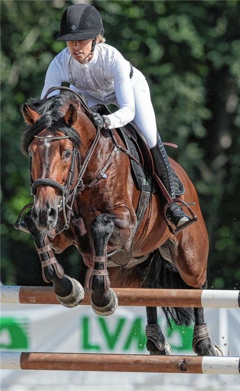 Tina Deuerer und Clueso 10 haben am Samstagabend das Springen der Klasse S* um den Preis der LMV Versicherung auf Gut Ising gewonnen. Die Reiterin vom RV Eppelheim (Bild) war mit neun anderen Sportlern fehlerfrei durch den Parcours gekommen, hatte aber in 65,23 Sekunden die schnellste Zeit und gewan