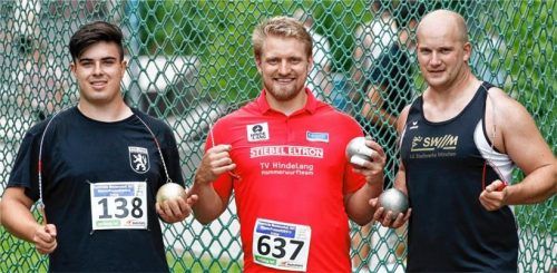 Die stärksten Hammerwerfer in Erding: (von links) U20-Bayern-Meister Kilian Drisga vom TSV Wasserburg, Olympia-Starter und deutscher Meister Tristan Schwandke (TV Hindelang) und Vize-Bayern-Meister Johannes Bichler aus Lauterbach.