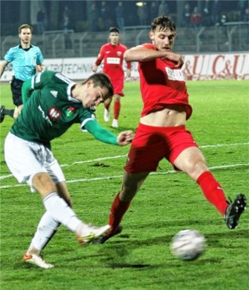 Chance für Schweinfurt: Tim Kraus gegen Buchbachs Lukas Winterling. Foto Michsel Horling