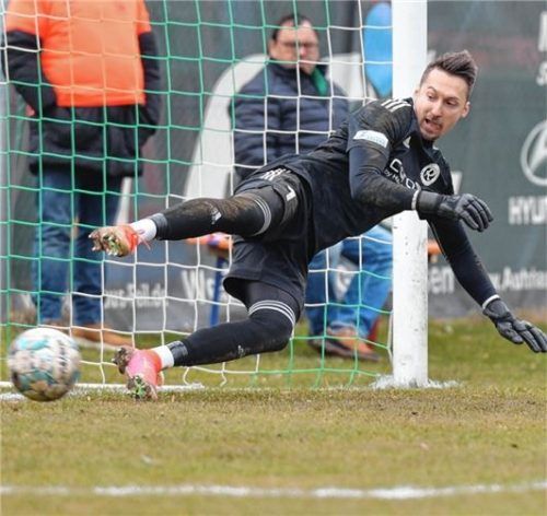 Chancenlos beim Elfmeter zur Eichstätter 1:0-Führung: Alin Goia, Torhüter des TSV 1860 Rosenheim, hat sich die falsche Ecke ausgesucht. Foto Johannes Traub