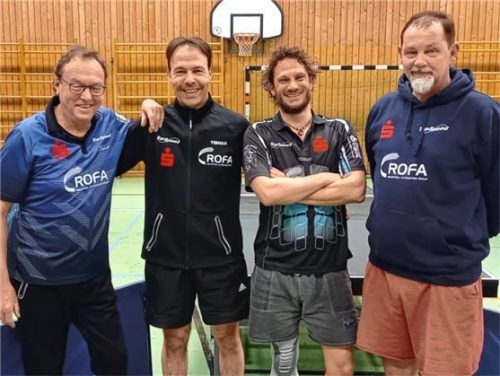 Die Herren des SV DJK Kolbermoor IV haben in der Bezirksklasse B, Gruppe 3 – nachdem sie im letzten Spiel ihren härtesten Verfolger SV Schloßberg mit 8:4 bezwangen – ungeschlagen mit 10:0 Punkten die Meisterschaft geholt und können in die Bezirksklasse A aufsteigen. Von links: Günther Lodes, Thomas