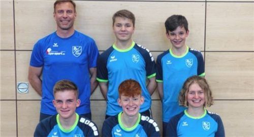 Die Buben des ASV Au kämpften in der Bezirksklasse B, Gruppe 3 mit Vagen bis zum letzten Spieltag um die Meisterschaft. Aufgrund des besseren Satzverhältnisses setzten sie sich mit 16:2 Punkten durch. Stehend von links: Coach Thomas Böhmert, Simon Millegger, Marinus Kirner; unten von links: Moritz F