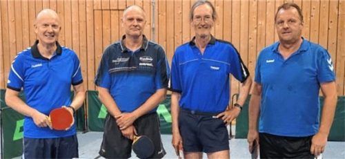 Erst am letzten Spieltag stand in der Bezirksklasse C, Gruppe 1, der Meister fest. Den Titel holte dabei der TSV Babensham III, der mit dem TSV Neumarkt-St. Veit II mit 18:2 Zählern punkt- und spielgleich war, aber die größere Differenz der Sätze aufzuweisen hatte. Von links nach rechts: Manfred Sue