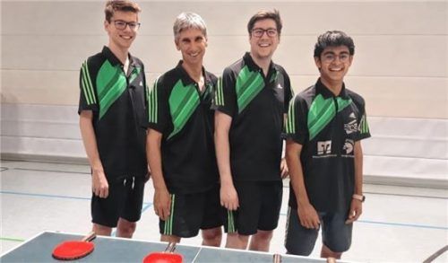 Die Herren des SB DJK Rosenheim II wurden in der Bezirksklasse C, Gruppe 4, mit nur einem Unentschieden behaftet, mit 13:1 Punkten Meister und sind berechtigt, in die Bezirksklasse B aufzusteigen. Von links nach rechts: Lenny Lutz, Bernhard Bruckner, Julian Behrens, Hary Pottayil. Auf dem Bild fehle