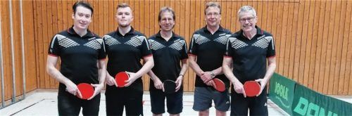 Die Herren des TuS Mettenheim blieben in der Bezirksklasse D, Gruppe 1, ungeschlagen, holten 16:0 Punkte und wurden mit vier Zählern Vorsprung Meister. Damit spielen sie in der nächsten Saison in der Bezirksklasse C. Von links nach rechts: Eugen Hubert, Michael Müller, Bernhard Hartinger, Detlef Dom