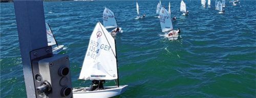 Bei traumhaften Bedingungen und vier Beaufort Windstärke aus östlicher Richtung ist es für 18 Segler bei der Opti-B-Regatta des Bernauer Segelclubs Felden (BSCF) aufs Chiemseer-Wasser gegangen. Um 12 Uhr ging die erste Wettfahrt los. Da der Wind konstant stark blies, wurden vier Rennen hintereinande