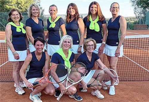 Die Tennis-Damen 40 des Tennisclubs Schnaitsee gewannen ungeschlagen die Meisterschaft der Südliga. Vorne von links: Andrea Westner, Mannschaftsführerin Gisela Wimmer und Brigitta Gröbner; hinten von links: Elfriede Pichler, Gabi Verbega, Tina Hopf, Irmi Erl, Claudia Irl und Birgit Kotiers. Foto unt