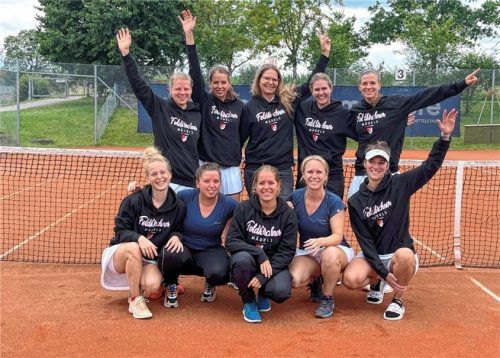 Die Tennis-Damen 2 des TV Feldkirchen wurden Meister und steigen in die Landesliga 2 auf. Auf dem Bild hinten von links: Katrin Altenhofer, Franziska Nadjafi, Manuela Lindenberg, Elisabeth Weickel und Celine Zapf; vorne: Carina Willecke, Daniela Sohler, Christina Bergbauer, Stefanie Schweiger und Jo