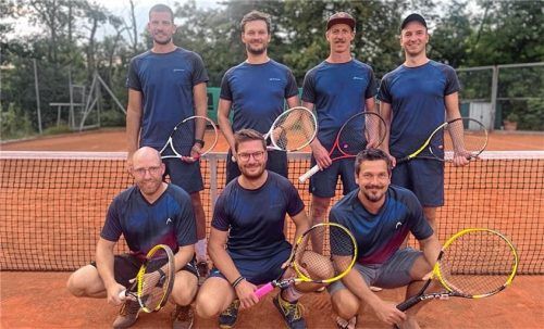 Die Herren 30 II der TeG Mühldorf wurden Meister in der Südliga 2, Gruppe 258, mit 14:0 Punkten und schafften den Aufstieg in die Südliga 1. Stehend von links: Daniel Kölbl, Alexander Lechner, Bernhard Auer und Rene Stadler; kniend von links: Peter Drschka, Fabian Zierhofer, Christian Rosenberger. N