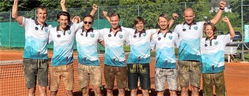 Die Tennis-Herren des TSV Marquartstein sicherten sich ungeschlagen die Meisterschaft in der Südliga 2. Damit schafften sie nach dem letztjährigen Aufstieg, den „Durchmarsch“ in die Südliga 1. Auf dem Bild von links: Heinz Hammerschmid, Lukas Hauser, Fabian Pronnet, Dominik Haider, Johannes Bauer, M