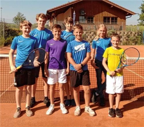 Die U15 II des TV Feldkirchen erkämpfte sich am letzten Spieltag den Aufstieg in die Südliga 4. Auf dem Bild von links nach rechts: Rupert Beck, Korbinian Lindner, Fynn Schröther, Sebastian Fried, Paul Andrusch, Jakob Reihl und Anian Seidl