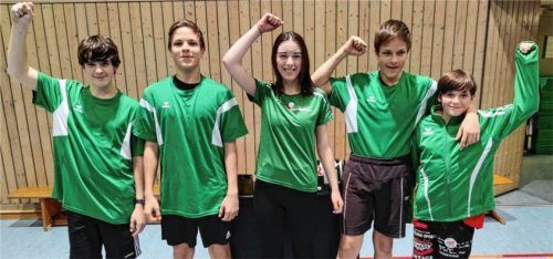 Die Buben des TSV Eiselfing, die durch Anna Wohlmann verstärkt wurden, sicherten sich in der Bezirksklasse A, Gruppe 4, ungeschlagen mit 12:0 Punkten die Meisterschaft und sind nun berechtigt, in die Bezirksliga aufzusteigen. Von links nach rechts: Romeo Seidinger, Michael Scheibel, Anna Wohlmann, A