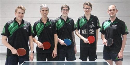 Die Herren des SB DJK Rosenheim II wurden in der Bezirksklasse B, Gruppe 4, mit 31:5 Punkten Meister und steigen in die Bezirksklasse A auf. Von links nach rechts: Reinhard Buchner, Bernhard Bruckner, Julian Behrens, Lenny Lutz, Albin Abulahu.