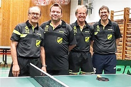 Die Herren des TSV Taufkirchen/Vils wurden in der Bezirksklasse B, Gruppe 1, mit 29:3 Punkten Meister und steigen in die Bezirksklasse A auf. Von links nach rechts: Hans Ossner, Christian Scholz, Helmut Hinterwimmer, Markus Erb.