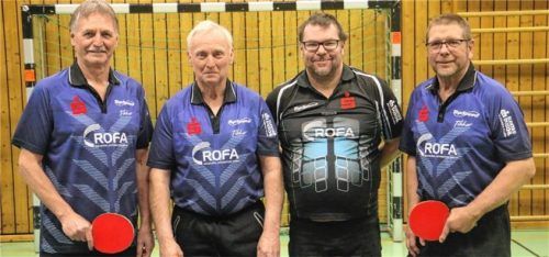Die Herren des SV DJK Kolbermoor VI wurden in der Bezirksklasse C, Gruppe 3, mit 26:6 Punkten Meister und schafften den Aufstieg in die Bezirksklasse B. Von links: Klaus Vockensperger, Adalbert Denk, Christian Vaughan, Klaus Wiesener.
