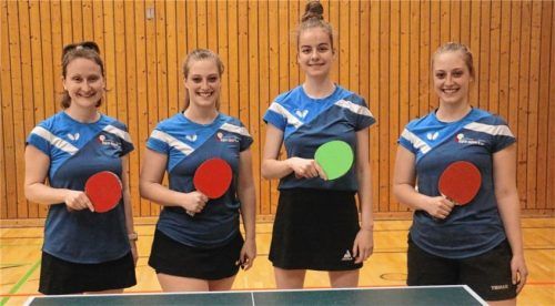 Die Damen des TV Feldkirchen sicherten sich in der Verbandsliga Südost nach dem Sieg im Spitzenspiel gegen den Verfolger SV Niederbergkirchen mit 19:5 Punkten die Meisterschaft und schafften die Rückkehr in die Verbandsoberliga. Von links nach rechts: Christine Kremser, Patrizia Weidinger, Katharina