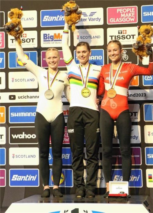 Bruckmühl kann weiter feiern. Nach dem WM-Titel der Bruckmühler Starßenfahrerin Antonia Niedermaier gewann am Sonntag Kunstradfahrerin Ramona Dandl (Mitte) von der Solidarität Bruckmühl den WM Titel im 1er-Kunstradfahren der Frauen. Die beiden deutschen Frauen dominierten bereits die Vorrunde. Hier