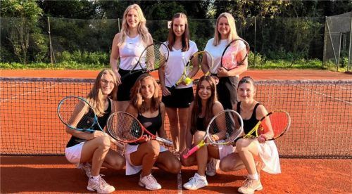 Die Damen 2 der TeG Mühldorf wurden in der Südliga 3 Meisterinnen und steigen in die Südliga 2 auf. Sehend von links: Christina Klingl, Theresa Lippeck (Mannschaftsführerin), Katharina Schratt; kniend von links: Sylvia Trommler, Claudia Trommler, Julia Zauner, Cäcilia Neumann. Es fehlen: Theresa Deg