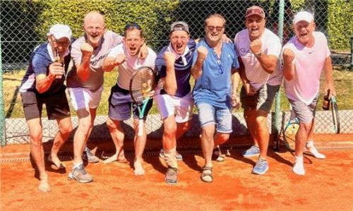 Die Herren 55 der TeG Mühldorf wurden Meister in der Landesliga 1 und steigen in die Bayernliga auf. Auf dem Bild von links: Stefan Lechner, Wolfi Baierlein, Bodo Tellkamp, Stefan Schörghuber, Carlo Schober, Winnie Sobotta, Ritsch Denk.