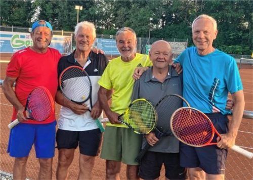 Die Herren 60 des TSV Eiselfing wurden in der Südliga 3 (4er), Gruppe 403, mit 12:0 Punkten Meister. Auf dem Bild von links: Franz Koblechner, Ludwig Meltl, Wolfgang Schmid, Peter Brandmaier, Günter Fuhrmann. Nicht auf dem Bild: Peter Huber, Dieter Rauch und Peter Maurer.