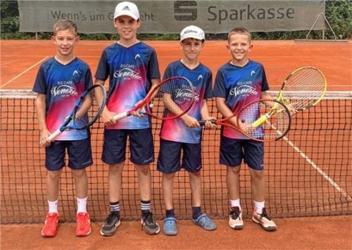 Die U12 I wurde nach dem letztjährigen Aufstieg souverän Meister in der Südliga 3. Auf dem Bild von links: Korbinian Brustgi, Johannes Drschka, Jakob Meyer und Jonah Böttger.