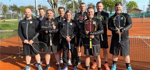 Die Herren 40 des SV Aschau wurden Meister in der Südliga 3 und steigen in die Südliga 2 auf. Von links Thomas Liess, Alex Kirr, Arthur Zabos, Jürgen Marksteiner, Christian Heueck, Jürgen Neumann, Claus Bartl, Markus Auer und Dave Bade.