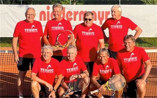 Die Herren 65 des SV Prutting wurden in der Landesliga 2 mit 12:2 Punkten Meister und steigt in die Landesliga 1 auf. Hinten: Freddy Hartmaier, Helmut Huber, Karl-Heinz Hohenleitner, Sepp Maier; vorne: Rudi Ecker, Rainer Krebs, Horst Sperl, Peter Reling.