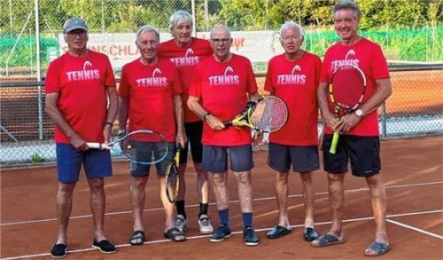 Die Herren 70 des SV Prutting wurden in der Südliga 1 mit 10:2 Punkten Meister und steigen in die Landesliga 2 auf. Von links: Udo Püschel, Franz Rinser, Sepp Maier, Gunter Foldenauer, Hans Heigl, Helmut Huber. Auf dem Bild fehlen: Wolfgang Dittrich und Gerhard Hölzl.