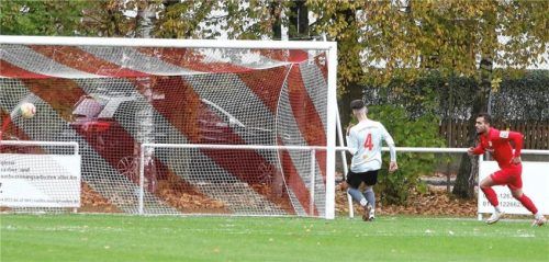 Das Hinspiel hatte mit einem 2:1-Sieg für Forstinning geendet, das Rückspiel haben die Landesliga-Fußballer des TSV 1860 Rosenheim ebenfalls mit 1:2 verloren. Es war wesentlich mehr drin für die Gäste. Nach der frühen Führung durch Laurin Demolli traf Awata zweimal. Das Bild zeigt das 2:1 für Forsti
