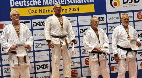 Helmut Maier (Zweiter von links) vom TSV Gars hat nach 2017 und 2018 die deutsche Judo-Meisterschaft wieder nach Bayern geholt. In der Altersklasse M7 und der Gewichtsklasse über 100 Kilogramm setzte sich Maier bei den deutschen Einzelmeisterschaften der Ü30 mit über 400 Teilnehmern in der ring°aren