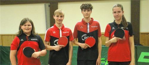 Die Jugend des SV Riedering II – Tim Kazek blieb ohne Niederlage – wurde in der Bezirksklasse B, Gruppe 4, mit 12:0 Punkten Meister und steigt in die Bezirksklasse A auf. Von links nach rechts: Nepomuk Krones, Jakob Jähnig, Tim Kazek, Lena Schuster.