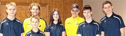 Die Jugend des SV Söchtenau III holte in der Bezirksklasse D, Gruppe 5, in der Max Eckl mit 14:0 Siegen herausragte, mit 12:0 Punkten den Meistertitel und steigt in die Bezirksklasse A auf. Von links nach rechts: Max Eckl, Lennard Strohal, Leni Krämer, Elias Kaubisch, Tobias Hundhammer, Jugendtraine