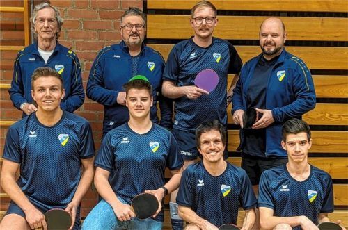 Die Herren des TSV Winhöring IV wurden in der Bezirksklasse D, Gruppe 5, mit 22:2 Punkten Meister und steigen in die Bezirksklasse C auf. Hinten von links nach rechts: Adi Hahn, Robert Vorderhuber, Alex Jesch, Andreas Huber. Vorne von links nach rechts: Leon Graf, Luca Aigner, Nico Hahn, Nico Maier;