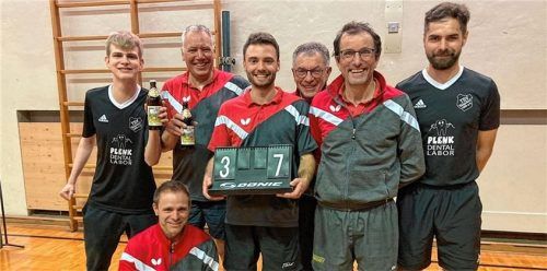 Die Mannschaft des TSV Siegsdorf II, die in der Rückrunde in Ersatzspieler Arthur Sobotta ihren besten Akteur hatte, wurde mit 26:6 Punkten Meister und steigt in die Bezirksoberliga auf. Von links nach rechts: Arthur Sobotta, Christian Gapp (kniend), Hans-Georg Plenk, Andreas Schmaus, Janoe Iranyi,