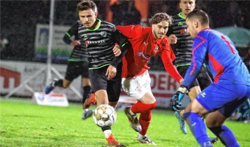 Alles probiert – vergebens! Der TSV Wasserburg (Bildmitte Daniel Yordanov) hat mit der 1:3-Niederlage gegen den TuS Geretsried seine Spitzenposition in der Tabelle der Fußball-Landesliga Südost eingebüßt. Die Altstadt ist aktuell keine Festung mehr, denn im sechsten Heimspiel der laufenden Saison mu