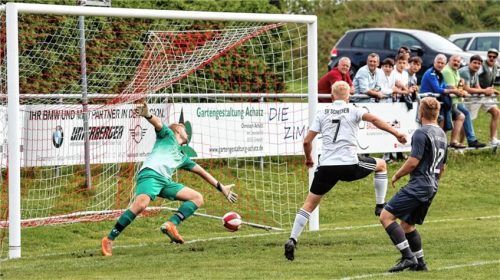 Gebannt verfolgt der Schechener Anhang im Hintergrund, wie der SVS im Punktspiel der Fußball-Kreisklasse 2 beim SV/DJK Griesstätt mit 1:0 in Führung geht. Josef Weichselbaumer drückte die Kugel aus wenigen Metern über die Linie und ließ Hausherren-Torhüter Simon Hamburger letztlich keine Abwehrmögli