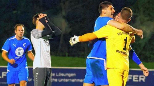 Enttäuschung bei Ampfings Kuffel, überschwänglicher Jubel bei den Spielern des TSV Bad Endorf (Torwart Tobias Pappenberger und Lucas Knauer). Der Aufsteiger aus dem Kurort hat in der Fußball-Bezirksliga Ost für eine Überraschung gesorgt und den Landesliga-Absteiger und aktuellen Tabellenzweiten TSV