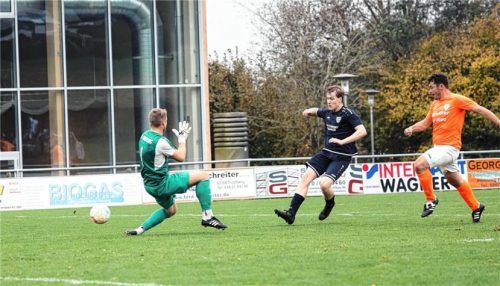 Der TSV Schnaitsee hat sich in der Fußball-Kreisklasse 2 ein kleines Polster auf die Abstiegsränge erarbeitet. Dank eines 2:1-Sieges gegen den SV Amerang steht Schnaitsee nun fünf Zähler über dem Strich. Leopold Berger (Bild, Mitte) brachte die Schnaitseer in Front, Tobias Fritz legte noch in der er