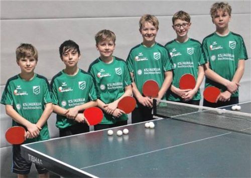Die Buben des SB DJK Rosenheim IV waren in der Bezirksklasse B, Gruppe 4 mit 10:2 Zählern mit dem TuS Raubling II zwar punktgleich, holten sich aber aufgrund des um zwei Sätze besseren Spielverhältnisses die Meisterschaft. Sie steigen nun in die Bezirksklasse A auf. Von links: Vitus Wirsing, Samuel