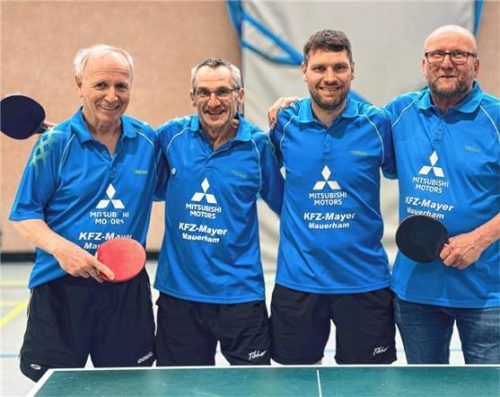 Die Herren des SV Taching wurden in der Bezirksklasse B, Gruppe 8, mit beachtlichen 150:30 Spielen und 36:0 Punkten Meister und steigen in die Bezirksklasse A auf. Auf dem Bild von links: Werner Felix, Alfons Kaindl, Thomas Mayer und Christian Greim.