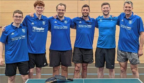 Die Herren des ASV Au III wurden in der Bezirksklasse C, Gruppe 3, mit einem Punkt Vorsprung auf den SV Bruckmühl III mit 31:5 Punkten Meister und steigen in die Bezirksklasse B auf. Auf dem Bild von links: Fabian Millegger, Ole Porbadnik, Valentin Düsel, Hans Brunner, Raphael Müller und Martin Schw