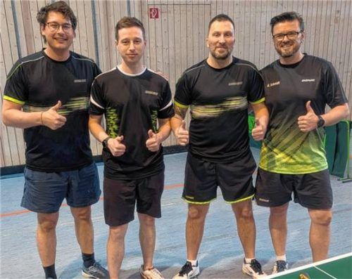 Die Herren des SV Bruckmühl wurden in der Bezirksliga Gruppe 1 West mit 32:4 Punkten Meister. Sie waren dabei mit dem TSV Babensham punktgleich, steigen aber aufgrund des besseren Spielverhältnisses in die Bezirksoberliga auf. Auf dem Bild von links: Emanuel Reiter, Benjamin Naujoks, Ivan Maticic, A